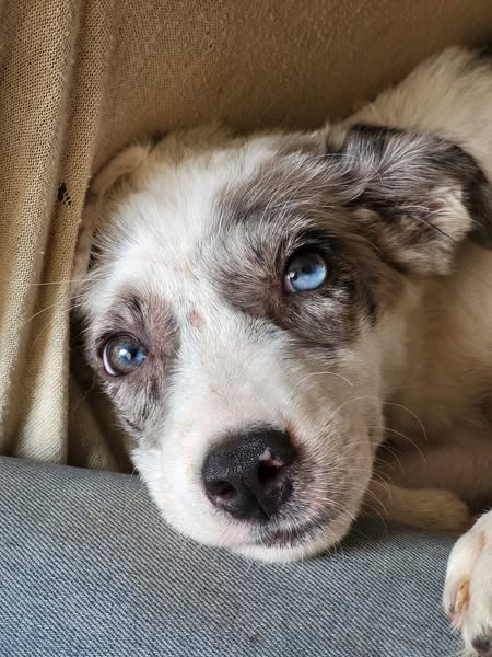 Heeft 1 blauw oog.